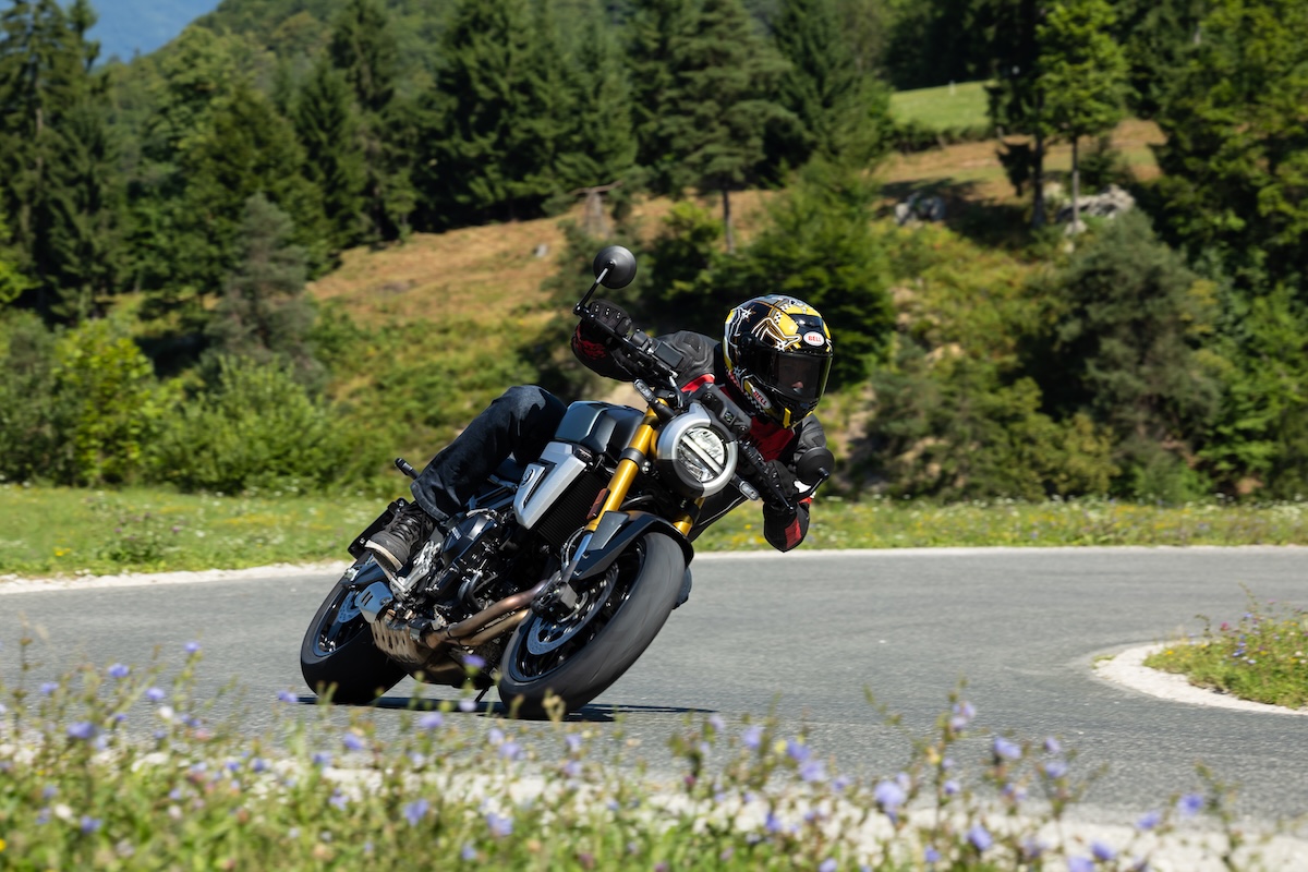 En entrant dans les collines et les montagnes slovènes, le rythme s’accélère. Malgré les réglages souples des suspensions, celles-ci reste suffisamment fermes pour une conduite sportive. L’équilibre de la T(T) n’est pas perturbé, à moins que vous ne commenciez à lui donner des coups de fouet, la direction est vive et précise. Balancer à gauche/droite, pousser dans un virage, accélérer trop tôt et se fier à l’électronique,… Elle fait tout cela, sans effort. En ce qui concerne les aides à la conduite, vous disposez d’un antipatinage, d’un quickshifter up/down et de trois modes de conduite. Parmi ceux-ci, il est préférable de choisir celui du milieu (B). Le mode A est trop agressif, et le mode C prévu pour la pluie est … lent. Bien que les freins mordent comme il faut, ils peuvent parfois être trop fermes. C’est notamment le cas lorsqu’il faut corriger une trajectoire. Ce n’est pas gênant, cependant, et finalement à la longue on s’y habitue.