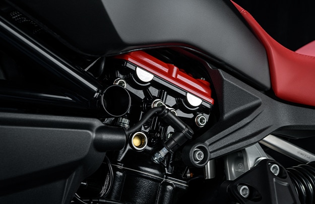 Sous sa robe se cache le bicylindre 660 cm3 calé à 270°. Celui-ci affiche une puissance de 95 ch (70,8 kW) – c’est 5 de moins que la RS – et il sera possible de le brider à 35 kW.