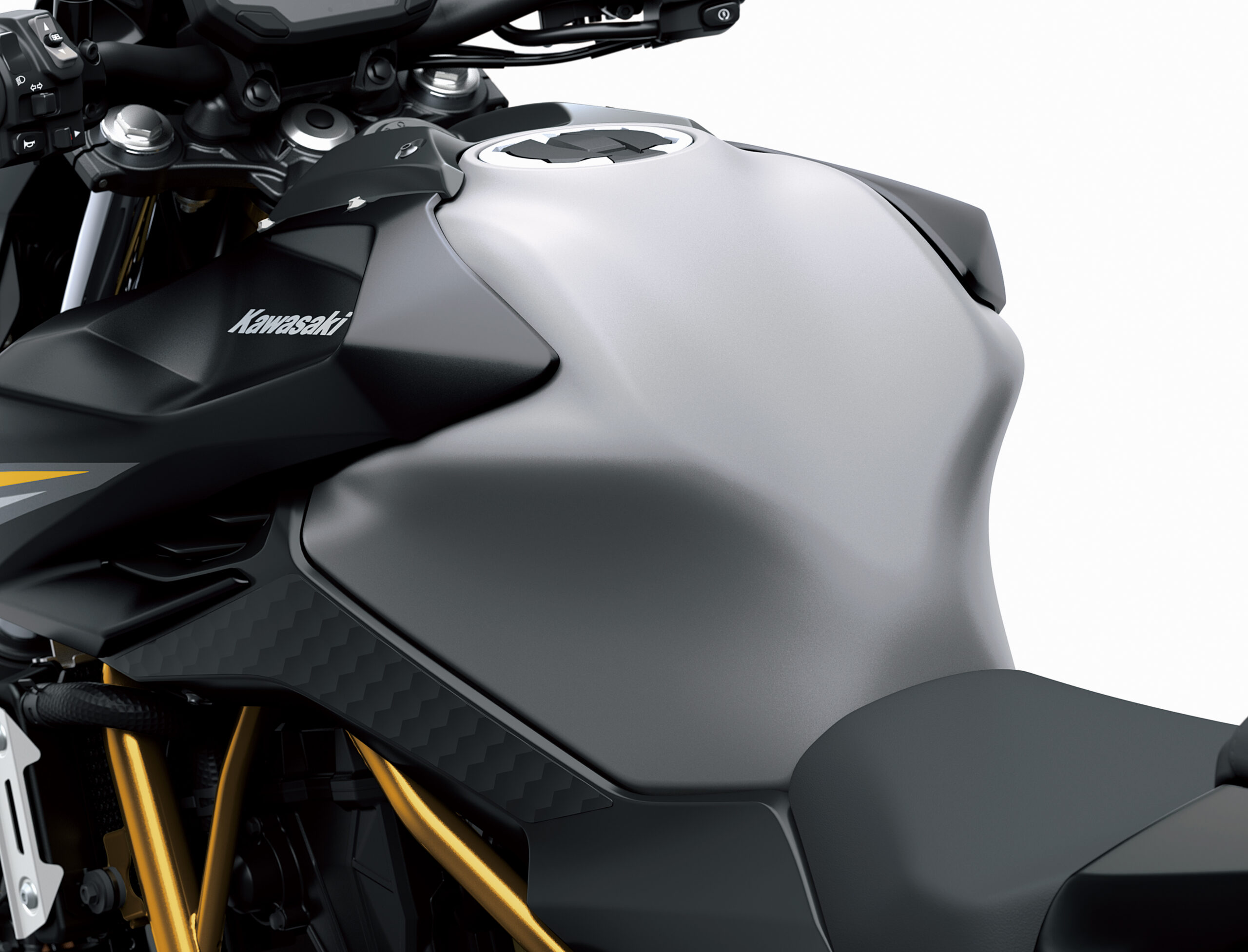 La nouvelle Z650 S est équipée d’un nouveau guidon plus large de type « fat-bar ». Ce guidon est 10 mm plus haut et 30 mm plus large. En avançant le guidon de 40 mm, on obtient un compromis idéal entre une position de conduite active pour un contrôle optimal de la moto et une position de conduite confortable. Et pour optimiser encore le confort, la nouvelle selle est 15 mm plus haute et plus plate, ce qui fait que le pilote a les jambes moins pliées.