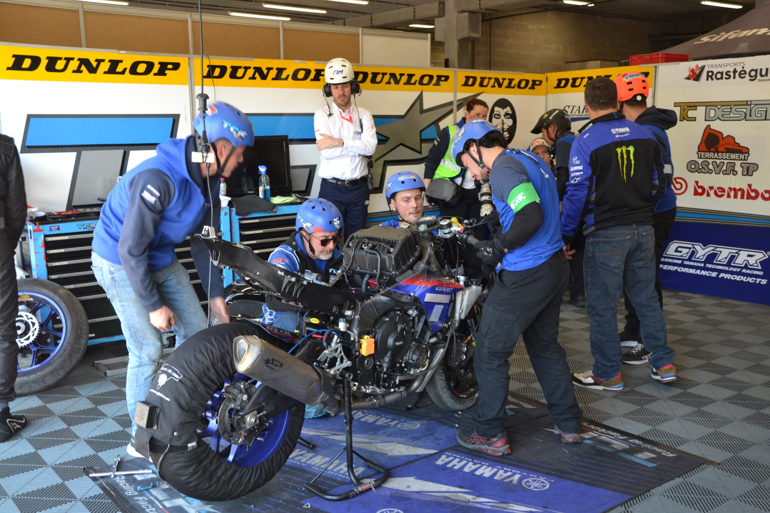 Pour terminer, nous vous proposons un petit florilège de photos prises dans les stands au moment où les équipages ravitaillent ou lorsqu’une moto nécessite des réparations après une chute.